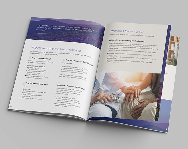 Patients were met with consistent, accurate information across channels—supporting informed conversations, appropriate expectations, and confident next steps. The materials reinforced Hoskinson Health’s commitment to evidence-based care while expanding access to advanced treatment options for individuals with complex mental health needs.